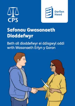 Mae’r dudalen hon yn egluro’r hyn y gallwch chi ei ddisgwyl gan Wasanaeth Erlyn y Goron: ein perthynas â chi, y ffordd y byddwn yn eich trin chi, a sut byddwn yn eich cynorthwyo drwy’r broses erlyniad troseddol.